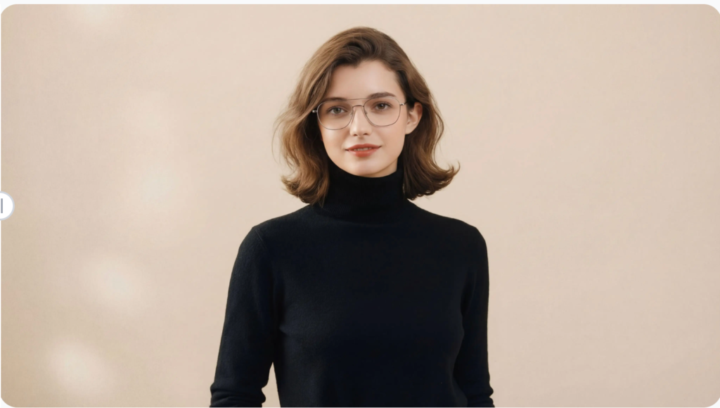 Business attire is generated to match the selected style, ensuring consistency between wardrobe, lighting, and facial orientation. This gives users a complete professional presentation without requiring physical outfit changes or studio sessions.